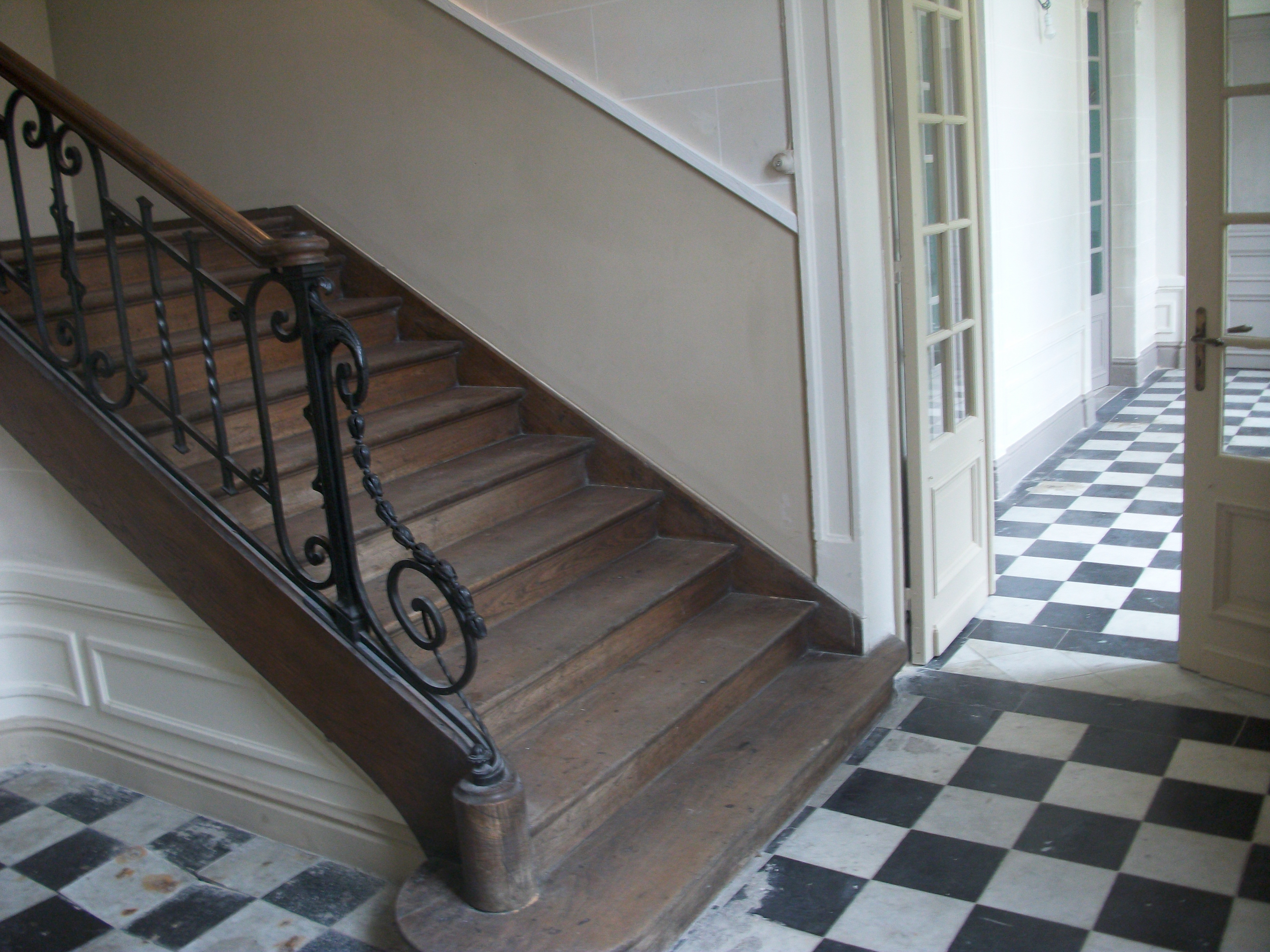 - Salle de réception, accès par un grand escalier à balustrade en fer forgé d’époque